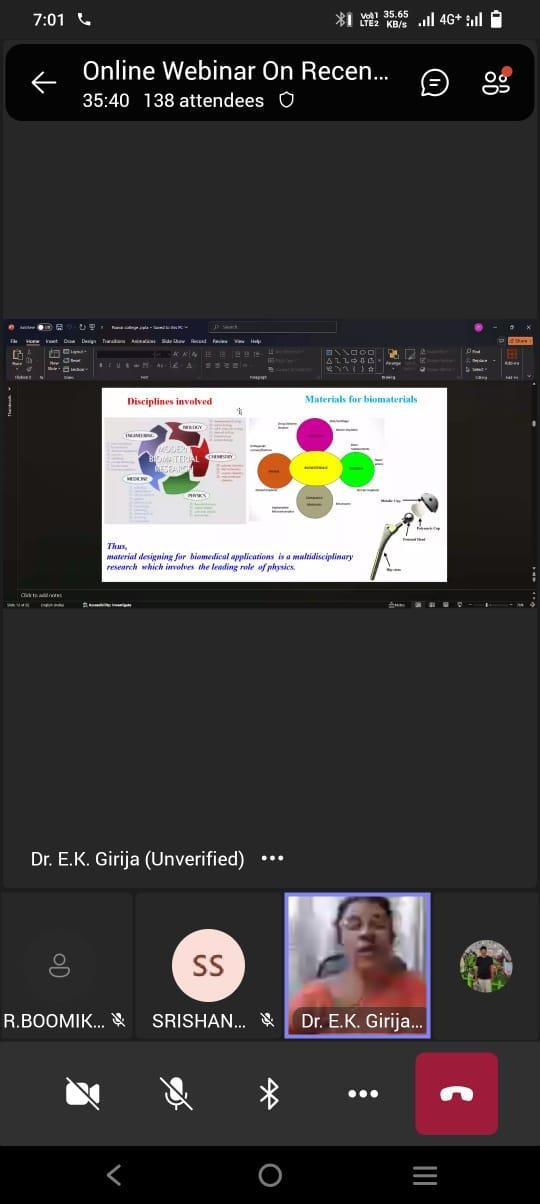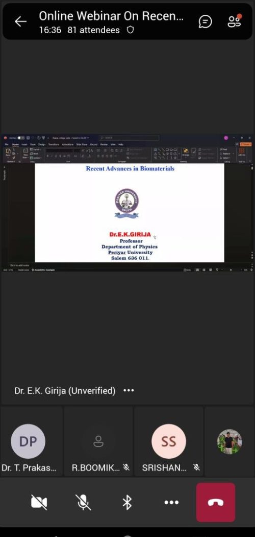 The Department of Physics, Paavai Engineering College, organized a one-day student webinar on “Recent Advances in Biomaterials” on March 25, 2025. The webinar was organized by Dr. T. Krishnakumar, Professor & Head of the Department, and coordinated by Dr. T. Prakash and Dr. N. Hariprakash, along with faculty members.