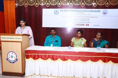 The Electronics club of the Department of Electronics and Communication Engineering in association with IIC, IEI (Salem) and IETE Jointly organized a Department Level Ideation Contest TECHNOVA ‘24 on 23.03.2024. The Objective was to encourage students to come up with creative ideas and assist them in turning those ideas into presentations. Dr.T.Loganayagi, Professor, Paavai Engineering College was the Jury. The Welcome Address was given by G.Nithiya Shrii, II ECE.