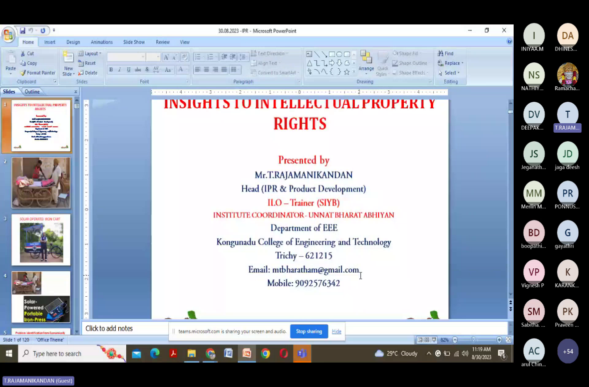 The Institution’s Innovation Council in association with the Entrepreneurship Development Cell of Paavai Engineering College has organized an online webinar on “Intellectual Property Day” Online Workshop on Insights To Intellectual Property Rights ” through the Microsoft team’s platform on 30.08.2023 from 11.00 a.m. to 12.00 Noon.