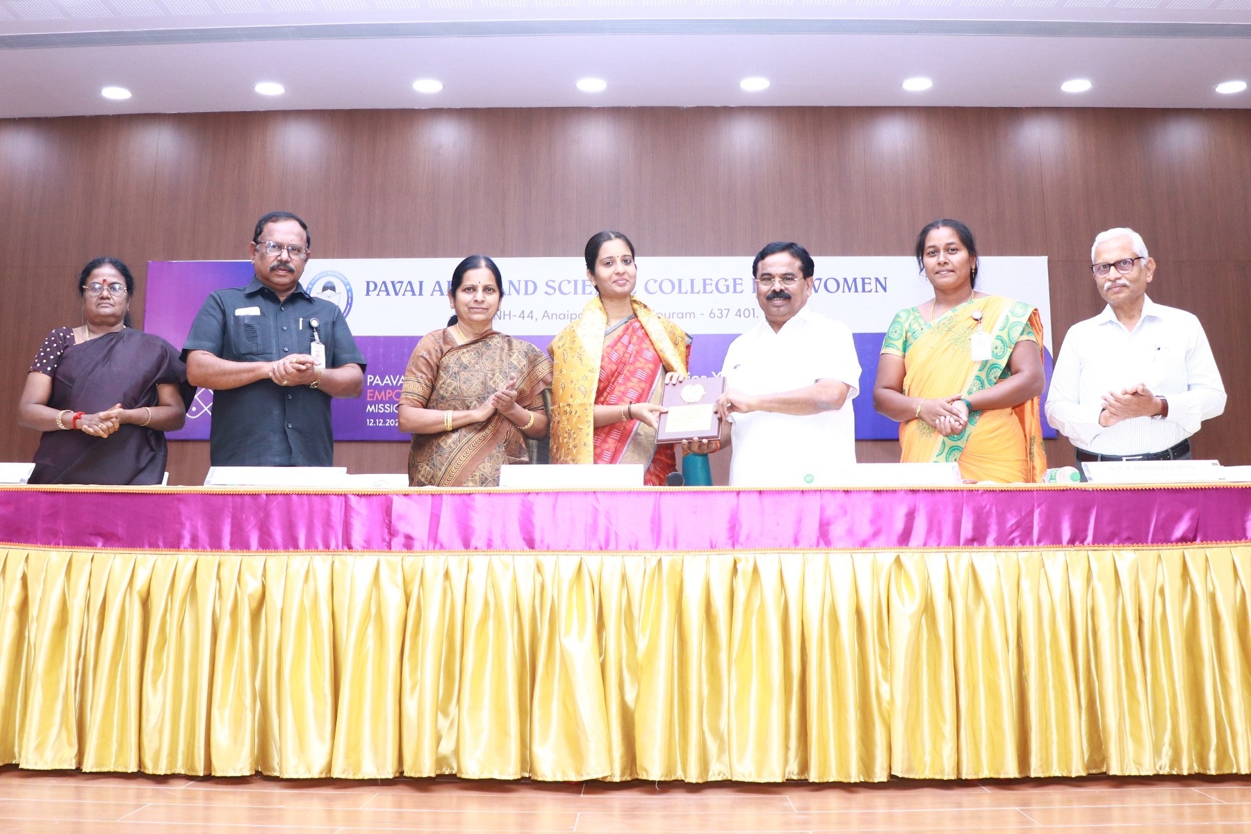 The Chief Guest, Mrs. Theivaanai, a Pattimandram Speaker, was honoured with a memento and shawl. The Presidential Address was delivered by Shri CA. N. V. Natarajan, Chairman and Founder of Paavai Educational Institutions, who highlighted the significance of women empowerment and stressed the crucial role of women in social and national development.