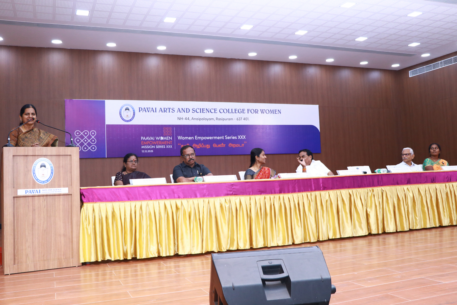 The Women Empowerment Series – XXX, titled “கலி அழிப்பது பெண் அறமடா”, was organized on 12 December 2025 at Dhiram Hall, Paavai Arts and Science College for Women, Anaipalayam, with the aim of emphasizing the importance of women empowerment in contemporary society.