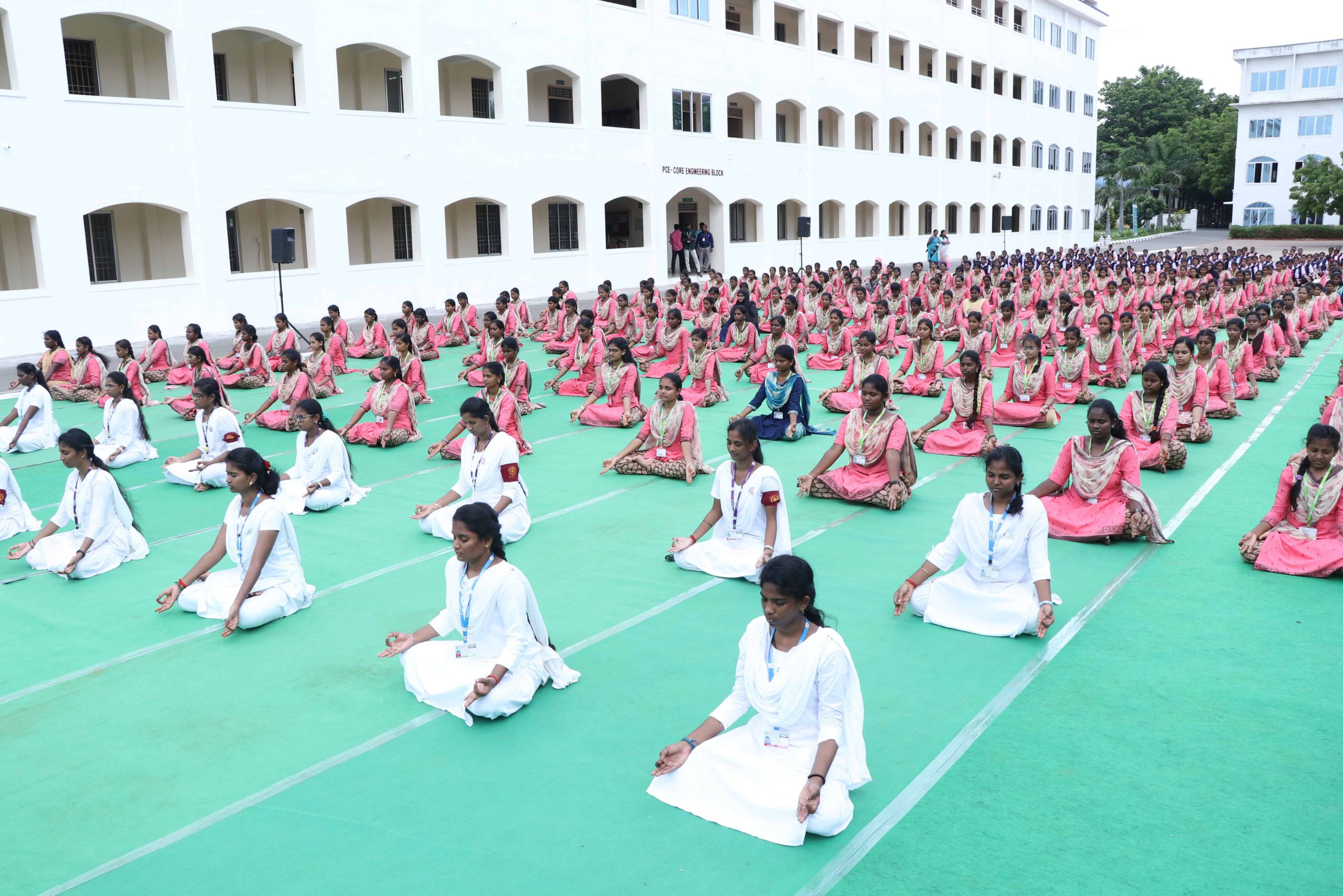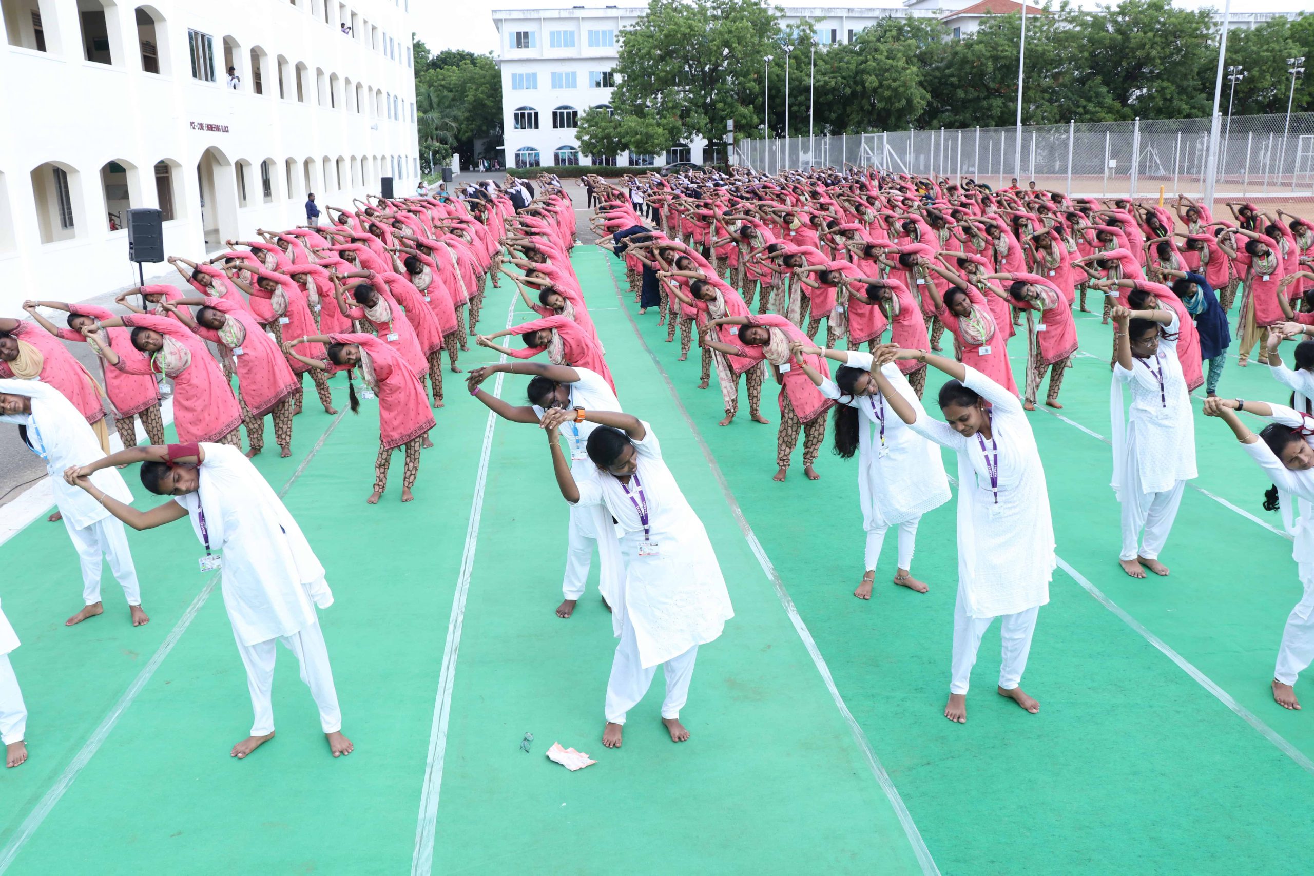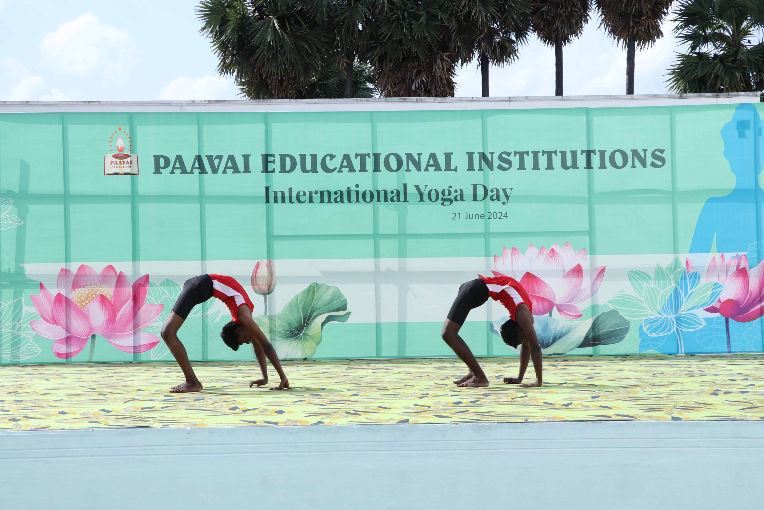 To highlight the unifying power of yoga,  a mass yoga demonstration was performed by the Paavai students to promote its benefits and foster a sense of community. This event showcased the student’s commitment to health and well-being, bringing together individuals to practice yoga in unison. The programme ended with a vote of thanks by Ms.P.Pavithra, first year AI&DS student. Director Administration, Principals, Deans, Heads of various departments, Professors, overall Program coordinator graced the event.