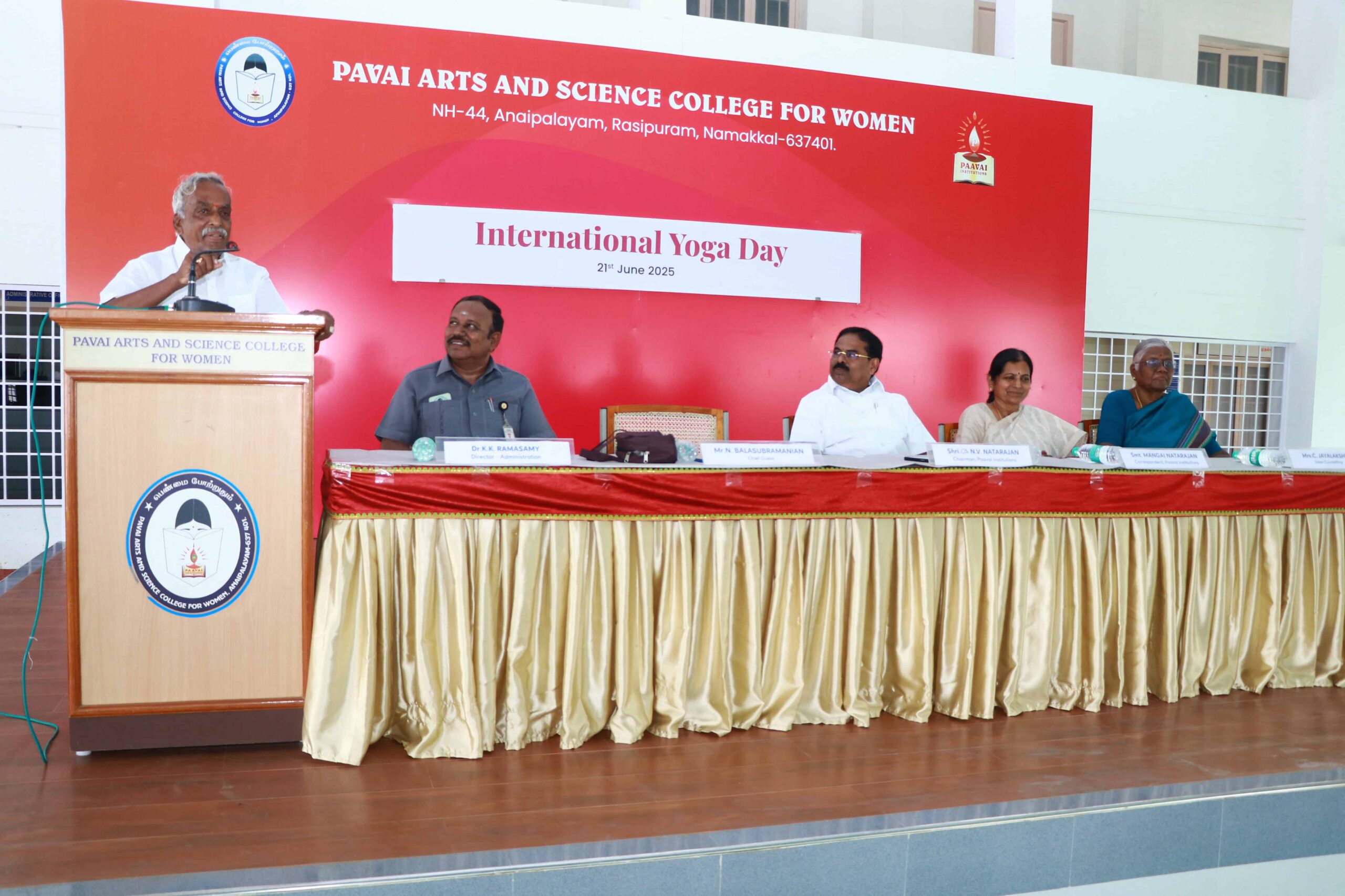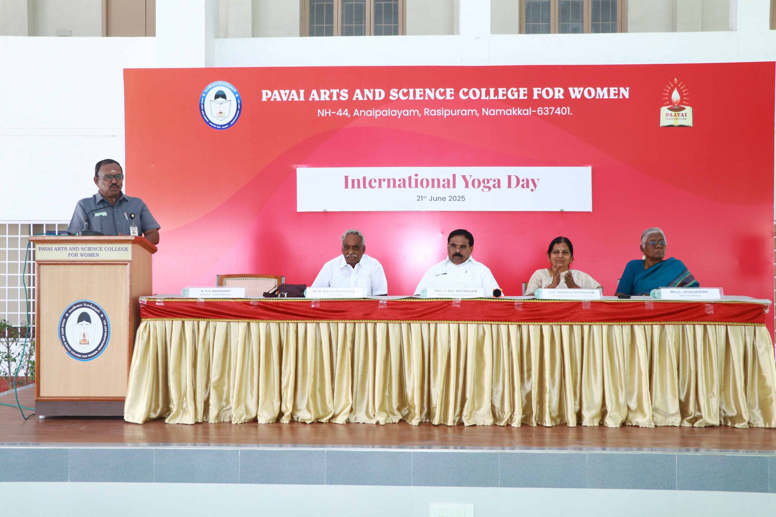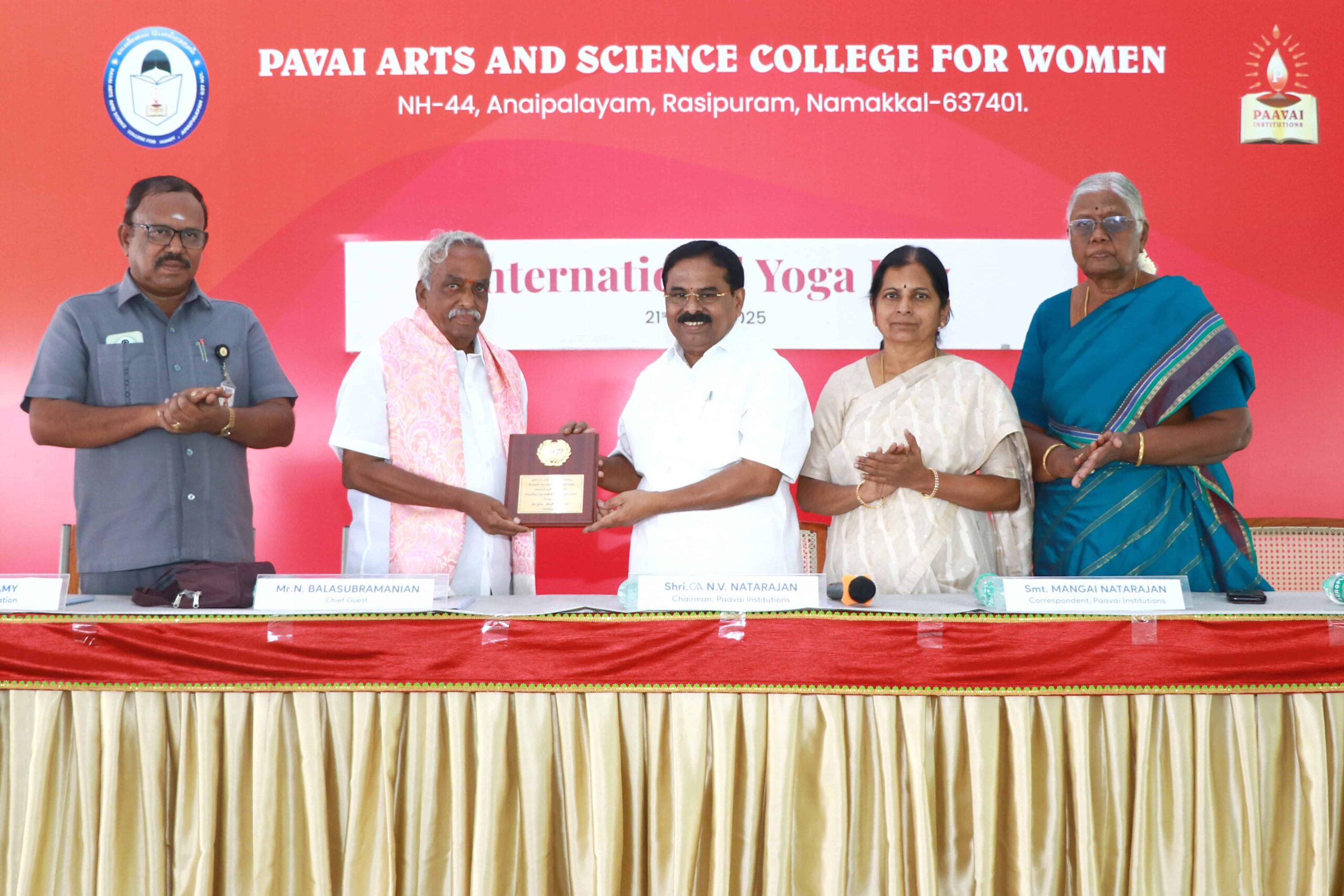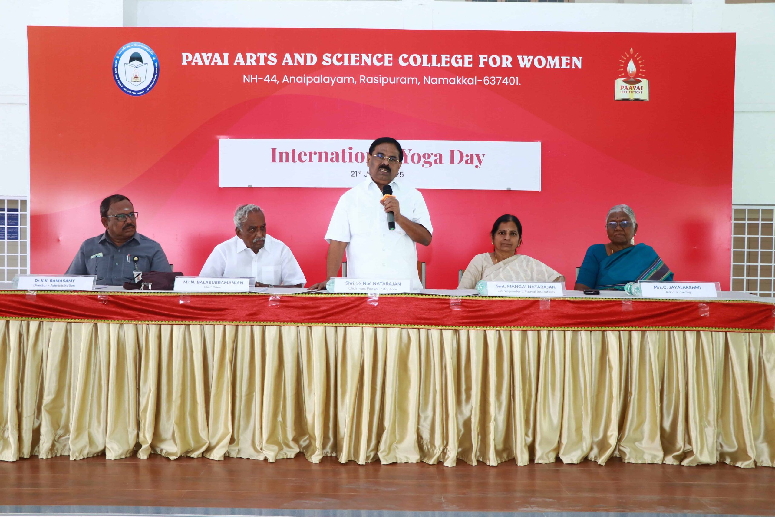 “Today, the yoga demonstrations performed by the students on the occasion of International Yoga Day were excellent and well-coordinated. Celebrating Yoga Day every year at Paavai is a commendable initiative. Yoga is an ancient gift passed down to us by our ancestors in India. Yoga and meditation belong to the same discipline. Practicing them daily helps in aligning the body, mind, and soul, thereby increasing physical strength. It also enables us to direct our minds along the right path and provides the mental clarity required to carry out our duties effectively.